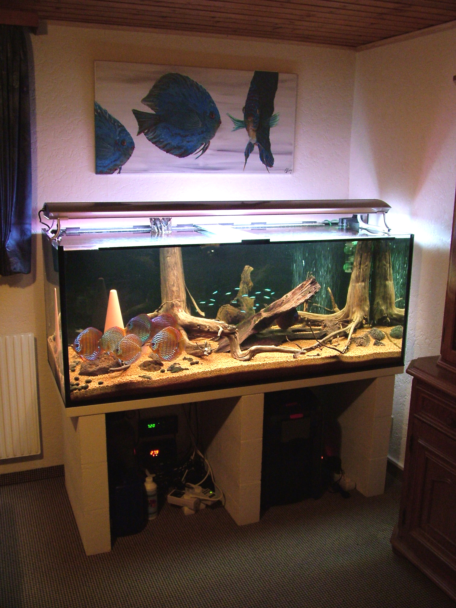 Fotografie + Deutsch: Typisches Diskus Aquarium, 2006-05-18 + pochází z Wikimedia Commons, kde má status – Creative Commons Attribution-Share Alike 2.0 Germany (autor: Fg-tiger at de.wikipedia).