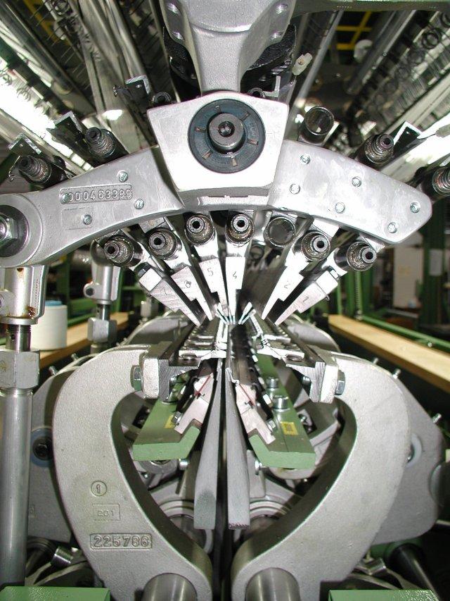 Fotografie + Description: Doppelraschelmaschine (Kettenwirkmaschine) - Detailansicht
