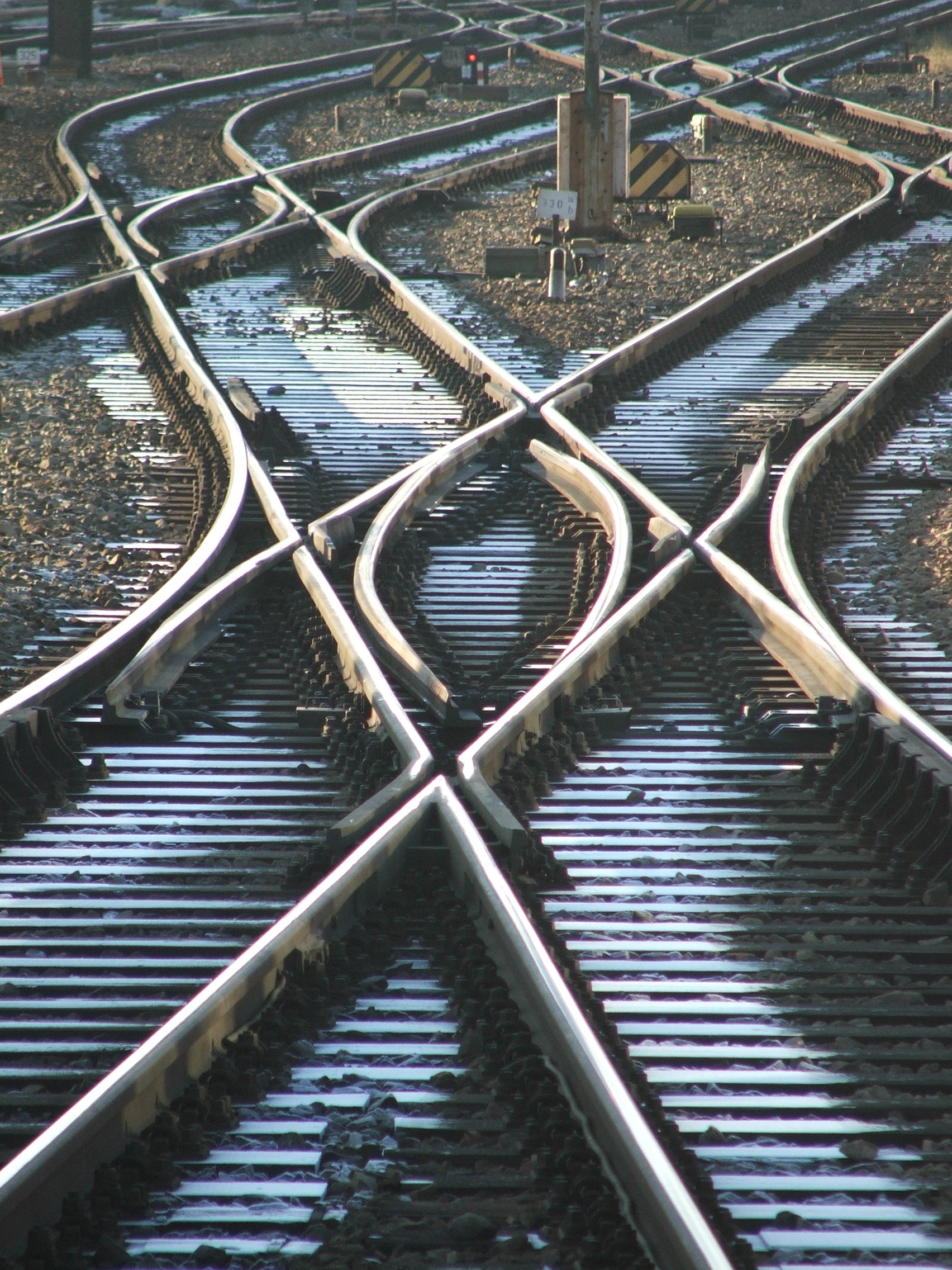 - Русский: Перекрёстный стрелочный перевод на вокзале Мюнхена.