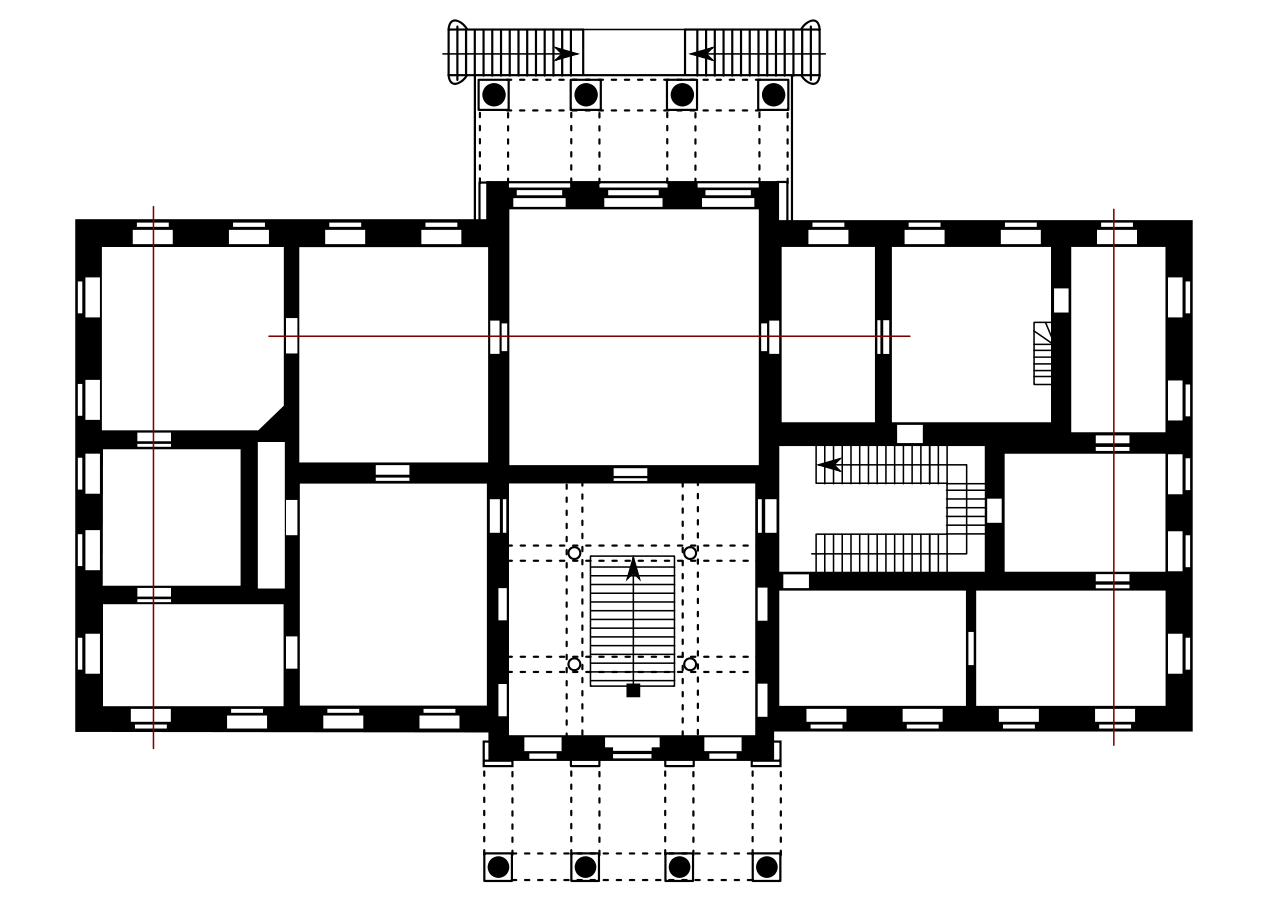 - Čeština: enfiláda ; Půdorys zámku v Kostelci nad Orlicí