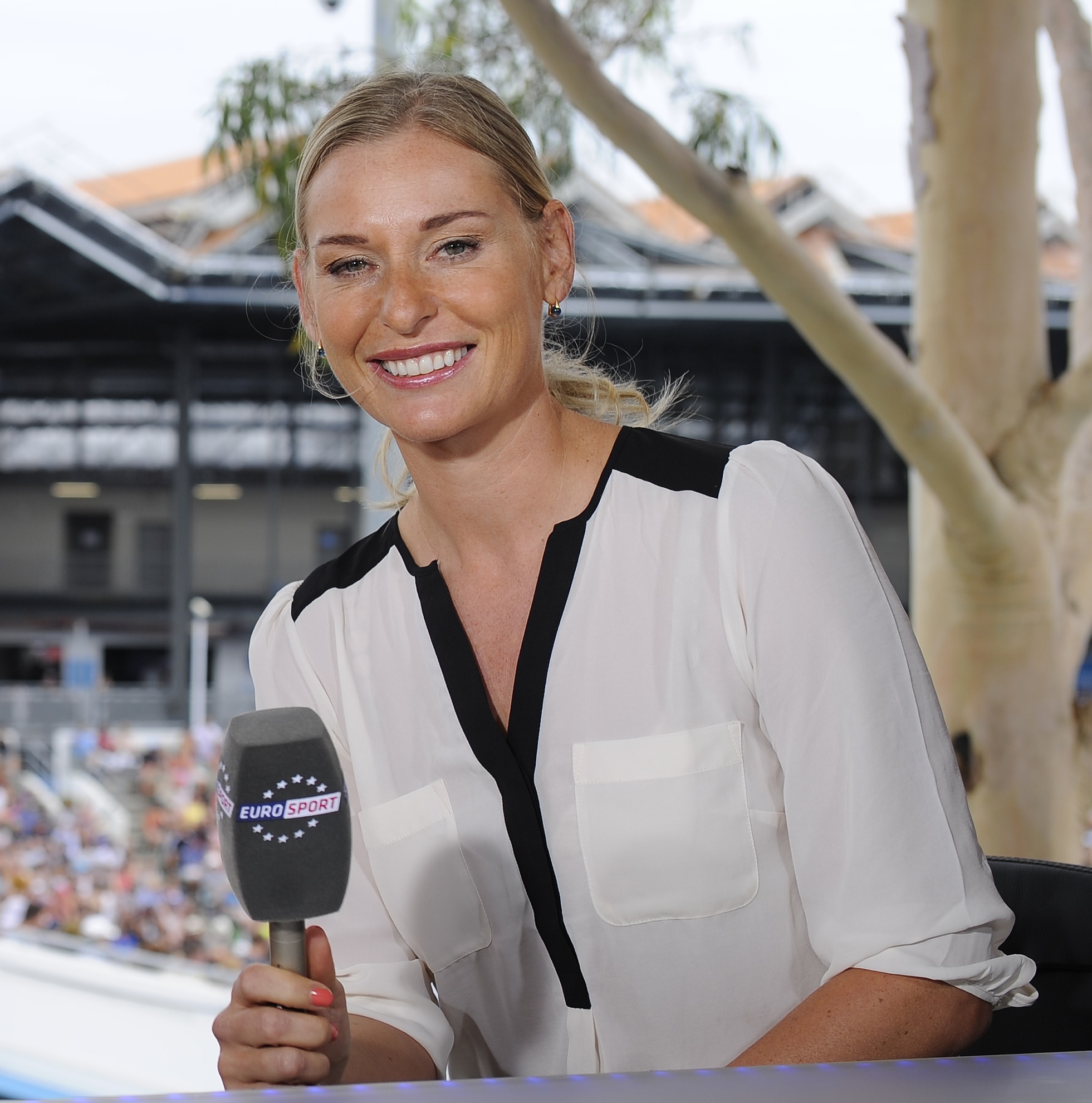 Fotografie + Description: English: Barbara Schett in the Eurosport studio during the 2014 Australian Open at Melbourne Park.