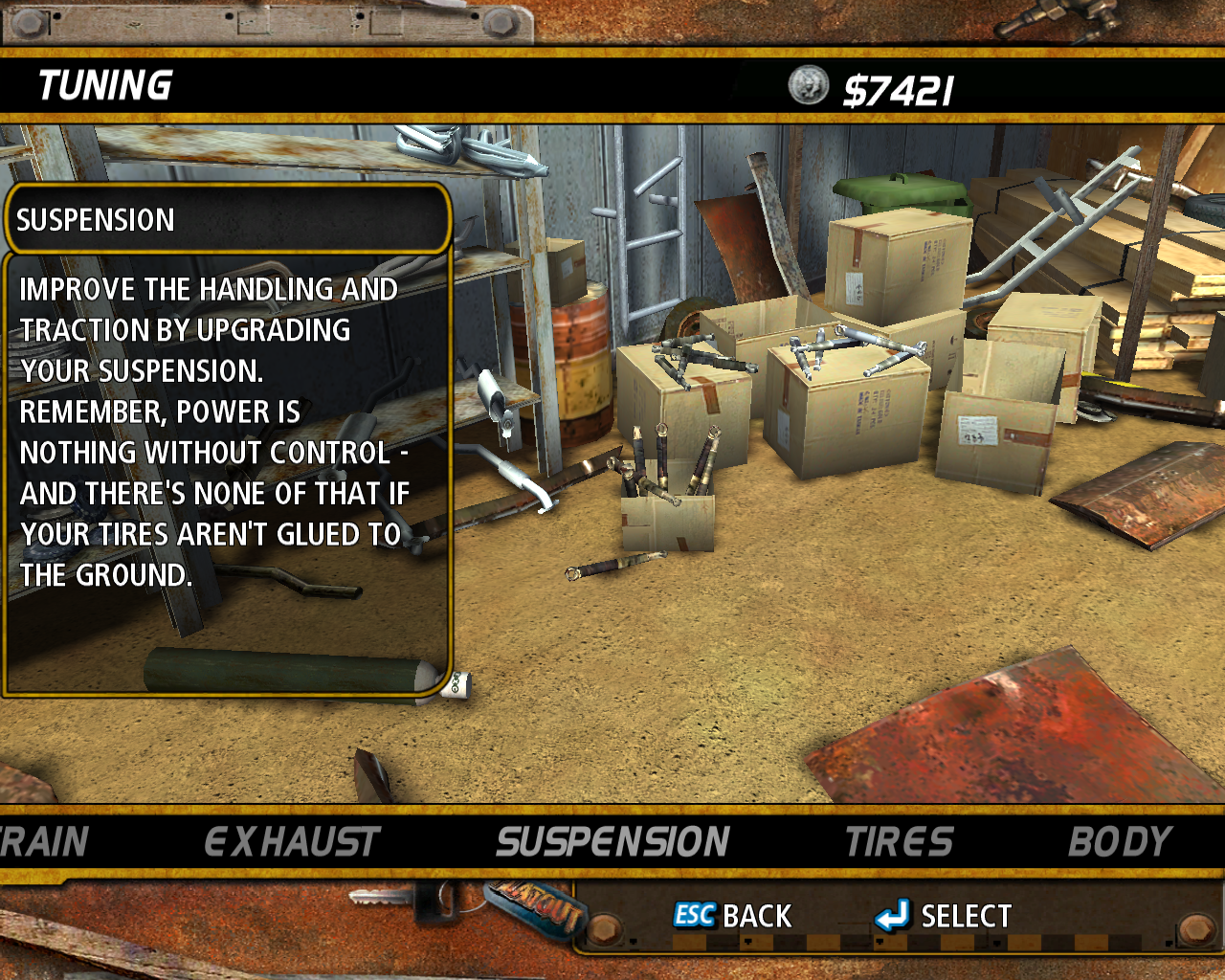 Aktuální snímek počítačové hry + FlatOut ( GOG.com ) + pochází z mého vlastního počítače.