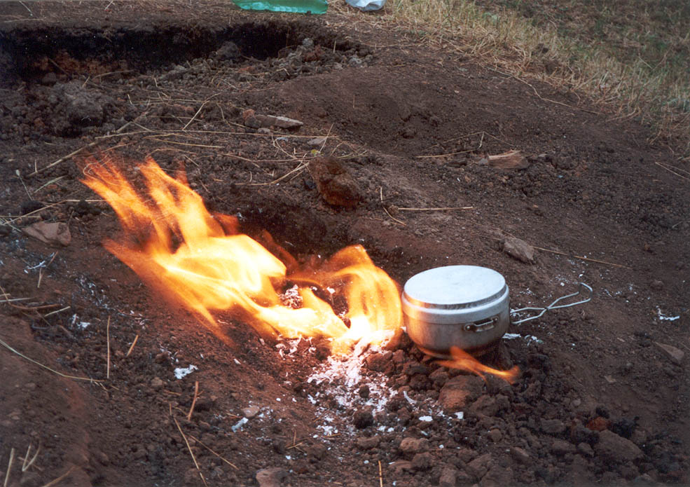 Fotografie + Description: Freely burning natural gas in Romania, near Lopatari (Judetul Buzau). On the fire, a tourist can cook a meal. Similar fires can be seen in Turkey, south of Antalya.