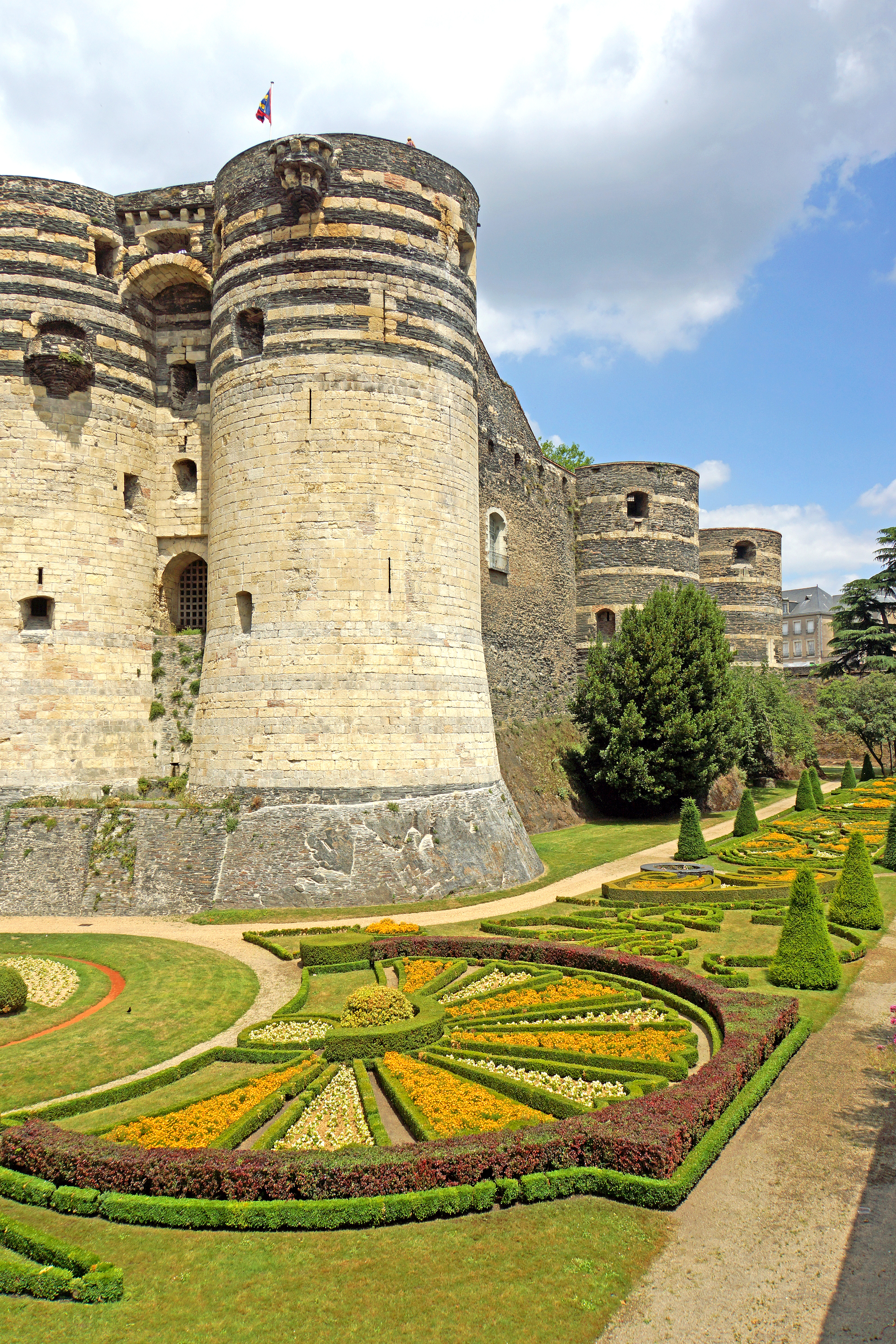 The Château d'Angers, dominates the old town. The castle was built between 1230 and 1240 by Louis IX of France. The massive walls are about one kilometer (.62mi) long and have 17 towers. During the 15th century, a chapel and the Châtelet were added in the courtyard.
