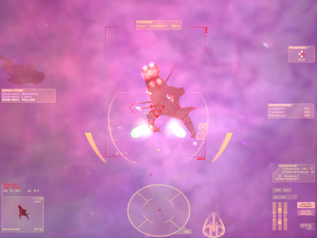 Aktuální snímek počítačové hry + Freespace 2 ( GOG.com ) + pochází z mého vlastního počítače.