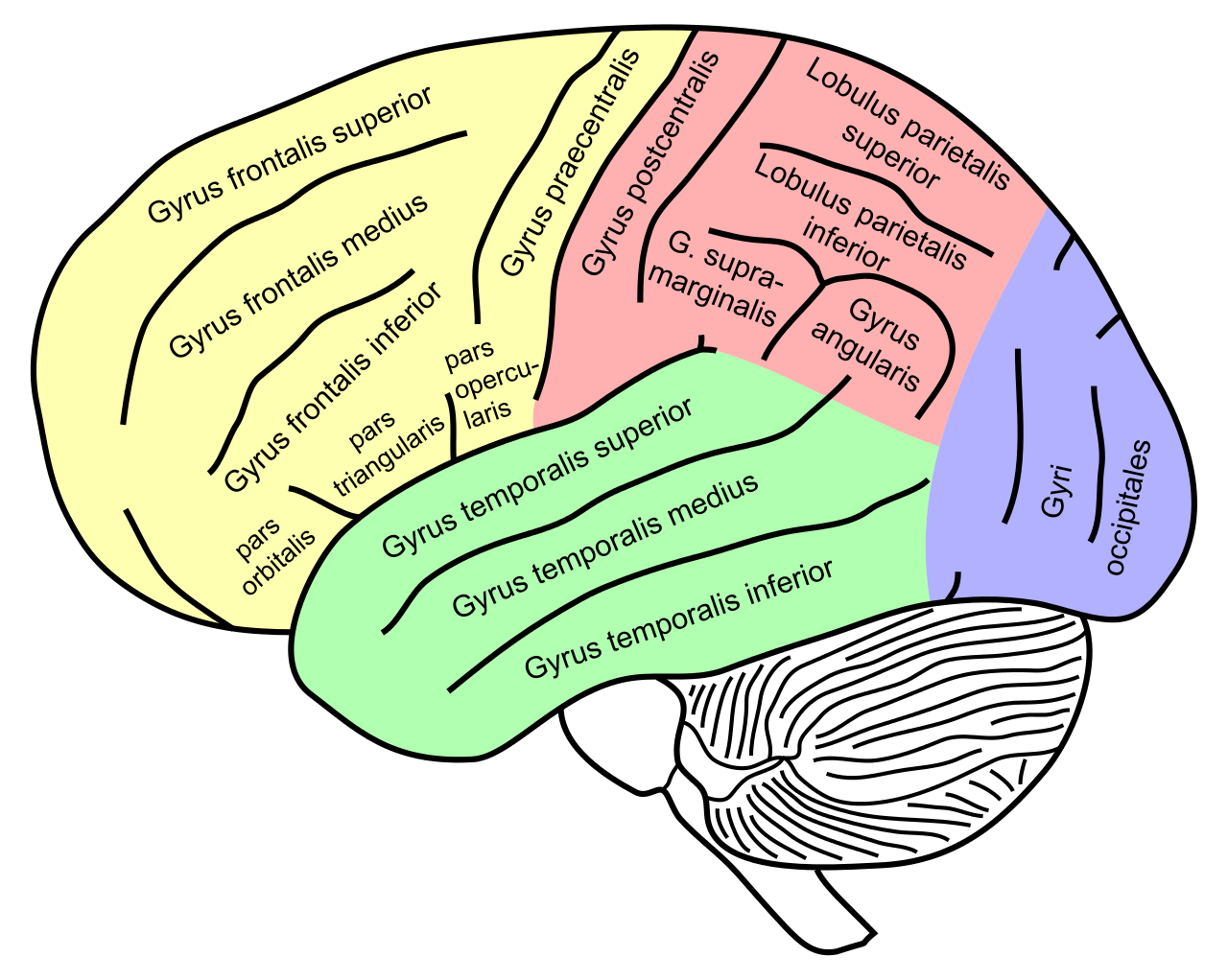 Soubor:Gehirn, lateral - Hauptgyri beschriftet.png