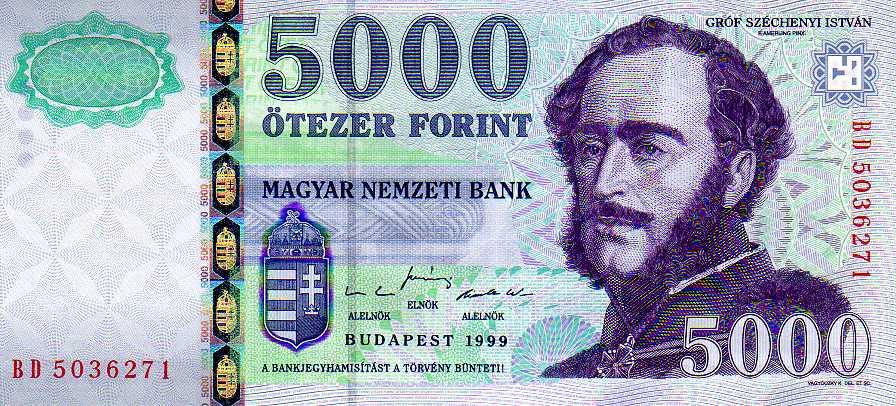 Fotografie + Description: 5000 Hungarian forint (1999) - obverse.