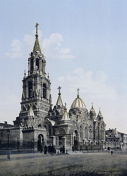 - Дмитриевский собор в Харькове. Данный вид придан архитектором М.И. Ловцовым, 1896. Перестроен под кинотеатр "Спорт" в 1930-е годы. Вид со стороны ул. Екатеринославской (ныне Полтавский шлях).