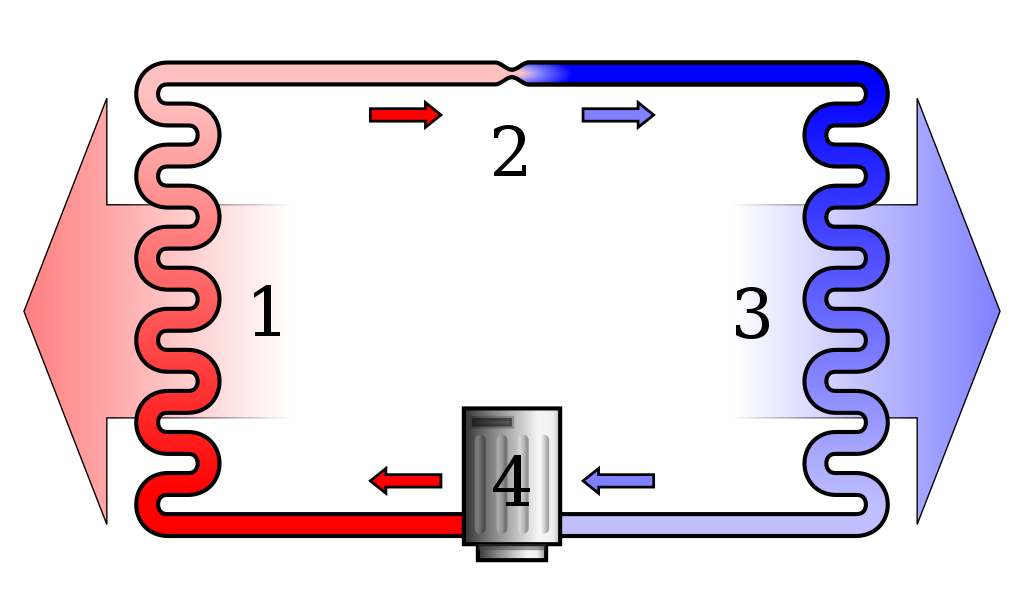 - Note that the arrows in the diagram are meant to indicate the flow of air and coolant; they do not correspond to heat flow, which in the system depicted is (generally) from right to left.
