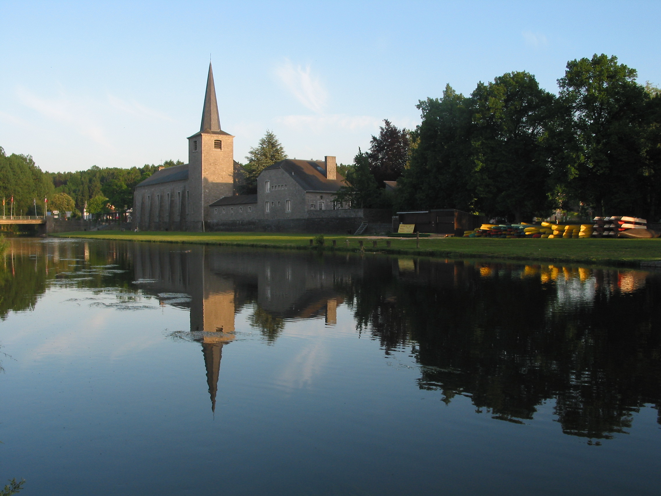 - English: Hotton (Belgium), view on the Ourthe river and the church of the borough.