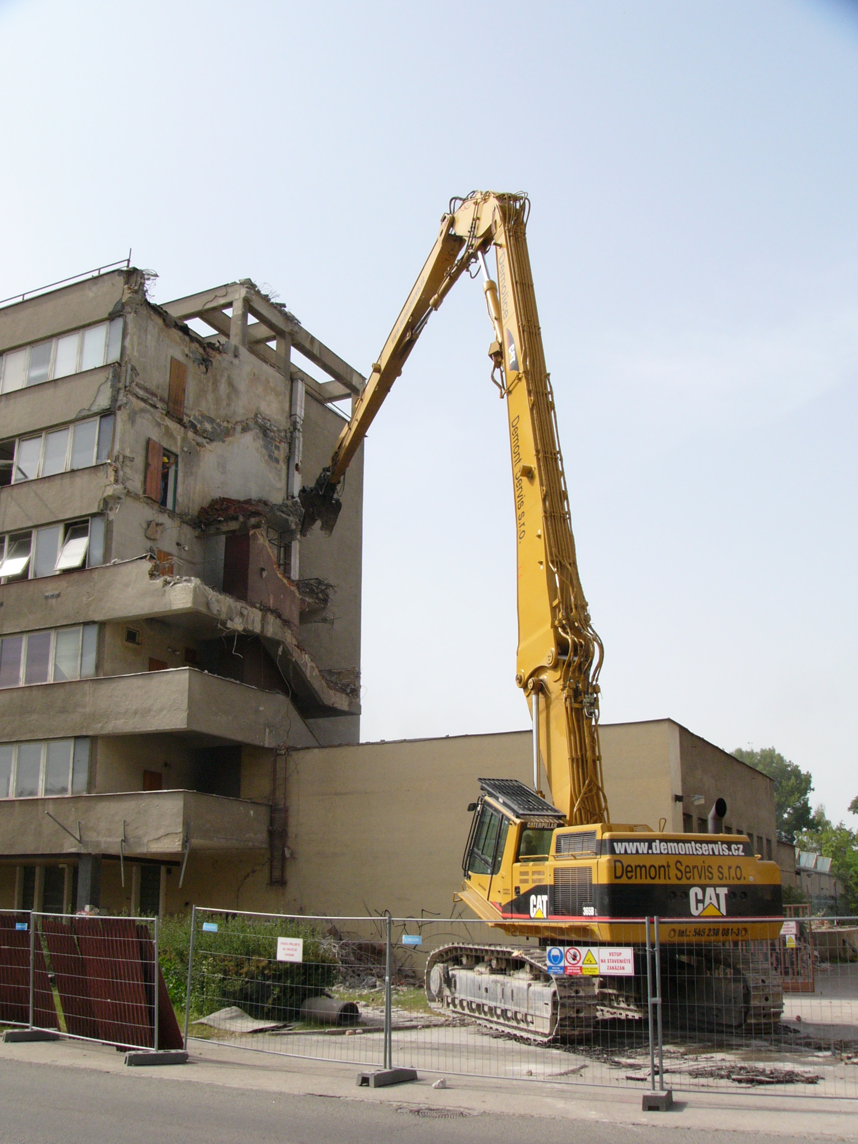 - Čeština: Hydraulické demoliční nůžky na podvozku CAT 365B L. Rameno 30 m dlouhé.