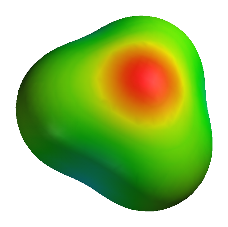 Obrázek + Česky: 3D diagram elektrického potenciálu hydroxoniového kationtu