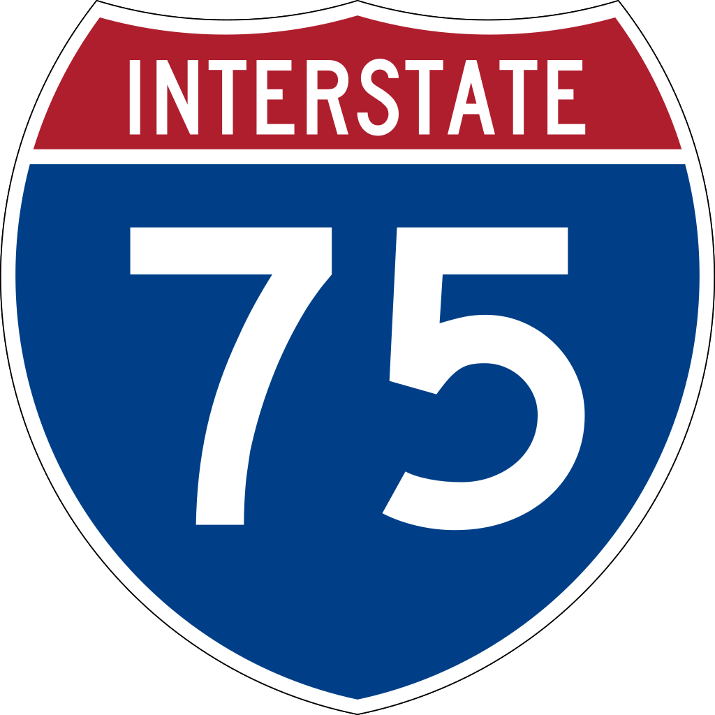 Fotografie + Description: 600 mm by 600 mm (24 in by 24 in) Interstate shield, made to the specifications of the 2004 edition of Standard Highway Signs (sign M1-1). Uses the Roadgeek 2005 fonts. (United States law does not permit the copyrighting of typeface designs, and the fonts are meant to be copies of a U.S. Government-produced work anyway.) Colors are from [1] (Pantone Red 187 and Blue 294), converted to RGB by [2]. The outside border has a width of 1 (1 mm) and a color of black so it shows up; in reality, signs have no outside border.