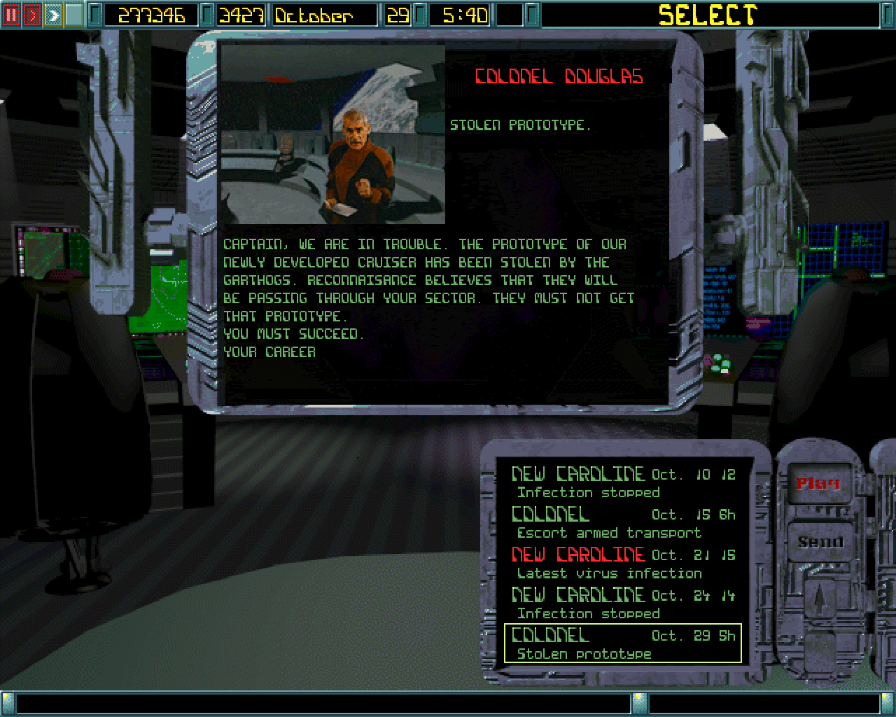Aktuální snímek počítačové hry + Imperium Galactica (GOG.com) + pochází z mého vlastního počítače.