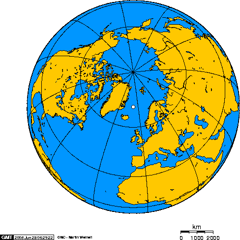 Mapa + English: Orthographic projection centred over Jan Mayen