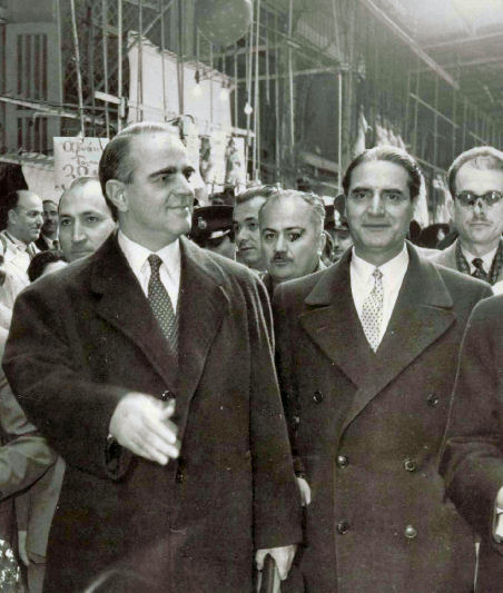 Fotografie + English: Konstantinos Karamanlis and Stefanos Natsinas visiting Central Market of Athens.