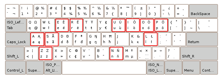 Obrázek + Description: Kashubian keyboard layout (GNOME/Ubuntu Linux)