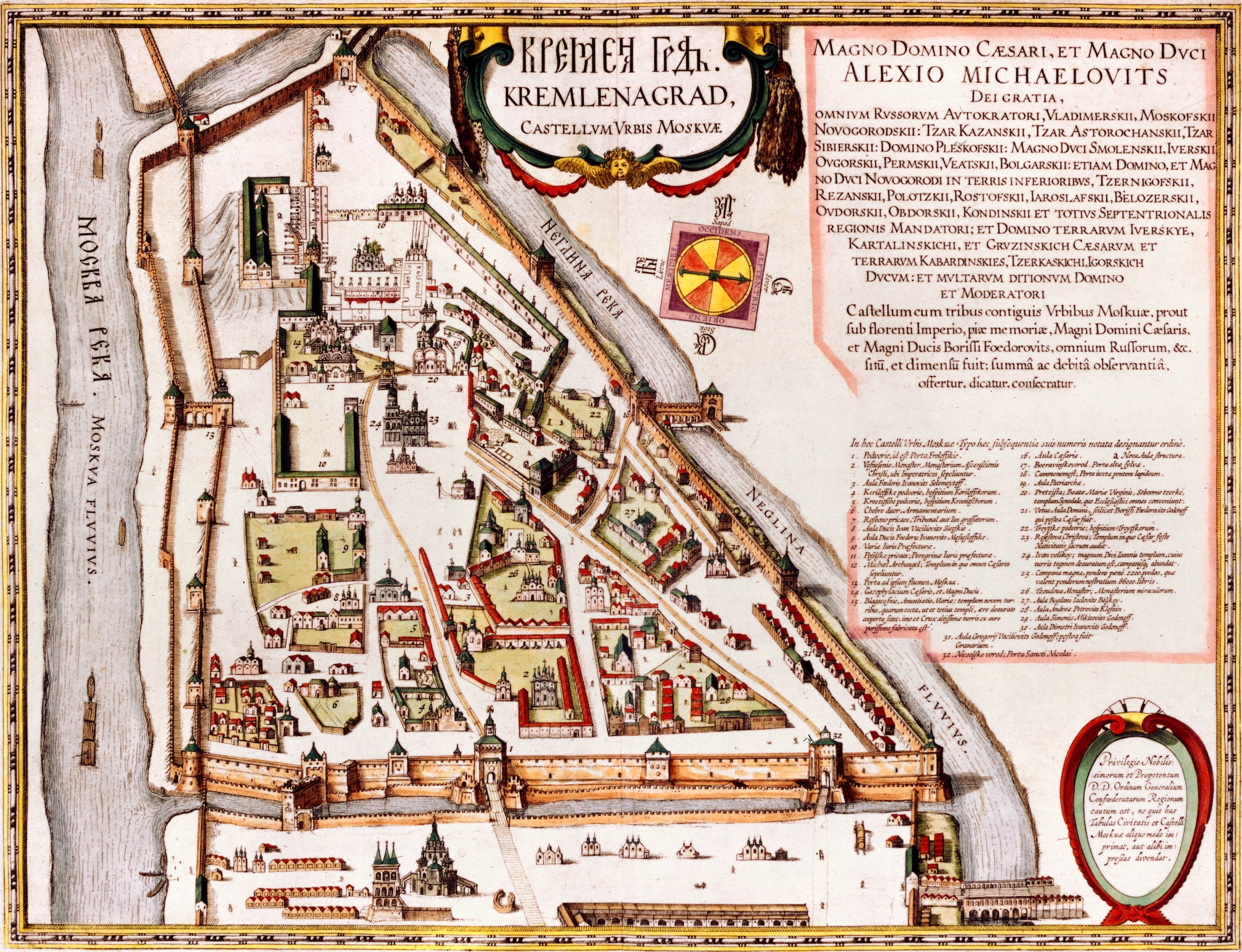 - Latina: Tabula Castelli Urbi Moskuae (Kremlin); Alexio Michaelo filio rege a Ioanne Blaeuo factus