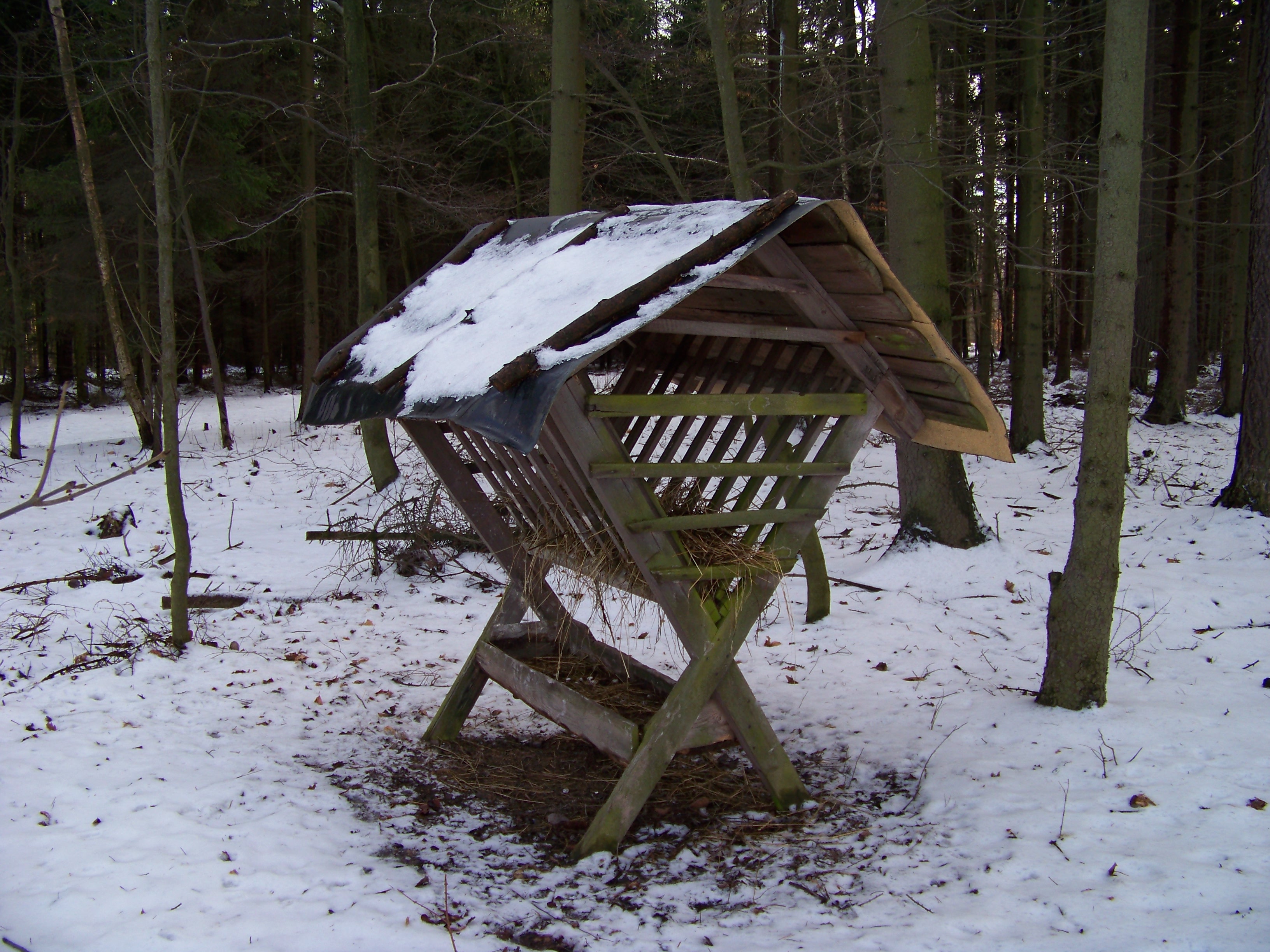 Fotografie + Čeština: Mutějovice, okres Rakovník. Naučná stezka Kamenné řady u Kounova. Krmelec u zastavení č. 4.