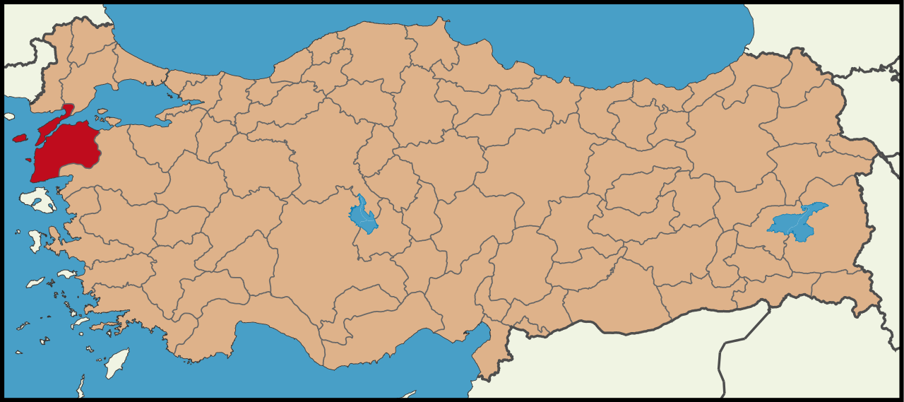- Türkçe: Çanakkale'nin konumunu gösteren harita.