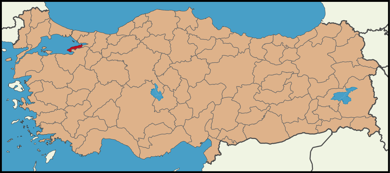 - Türkçe: Yalova'nın konumunu gösteren gösteren harita.