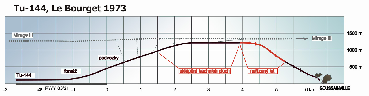 - Czech: Nehoda v Le Bourget 1973 - letový profil Tu-144 a Mirage III
