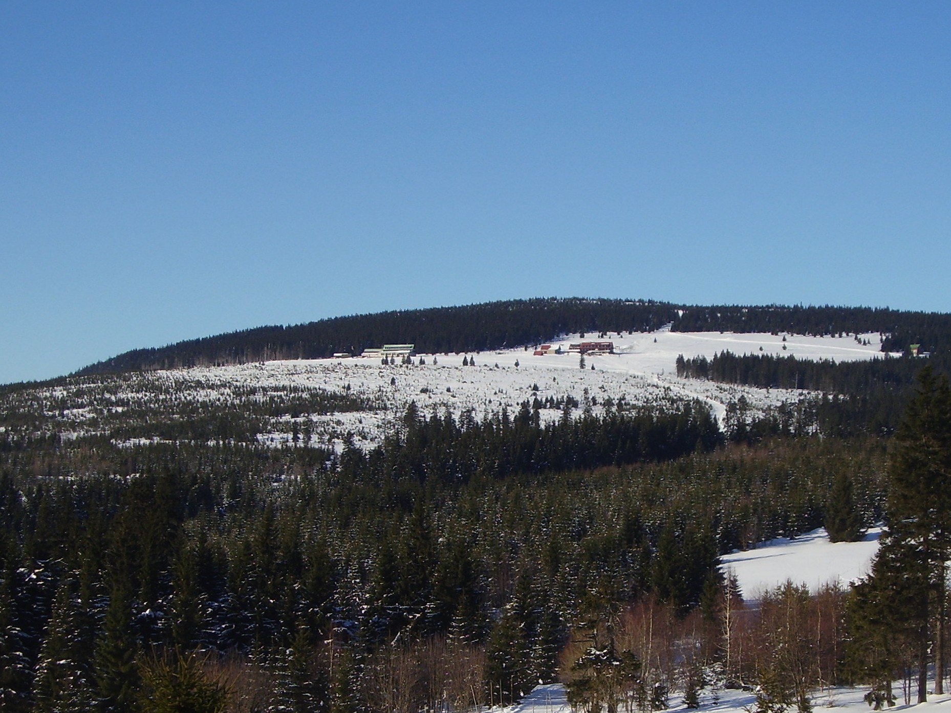 Fotografie + Čeština: Pohled na Liščí louku s Lyžařskou boudou od boudy Mír v Krkonoších