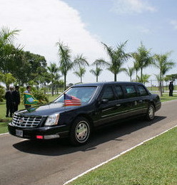 Fotografie + Description: The limo of the POTUS. President George W. Bush's motorcade en route to Granja do Torto Saturday, Nov. 6, 2005, the home of Brazil's President Luiz Inacio Lula da Silva.