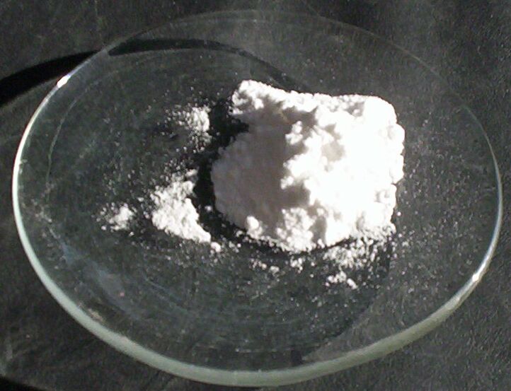 Fotografie + English: A sample of lithium carbonate.