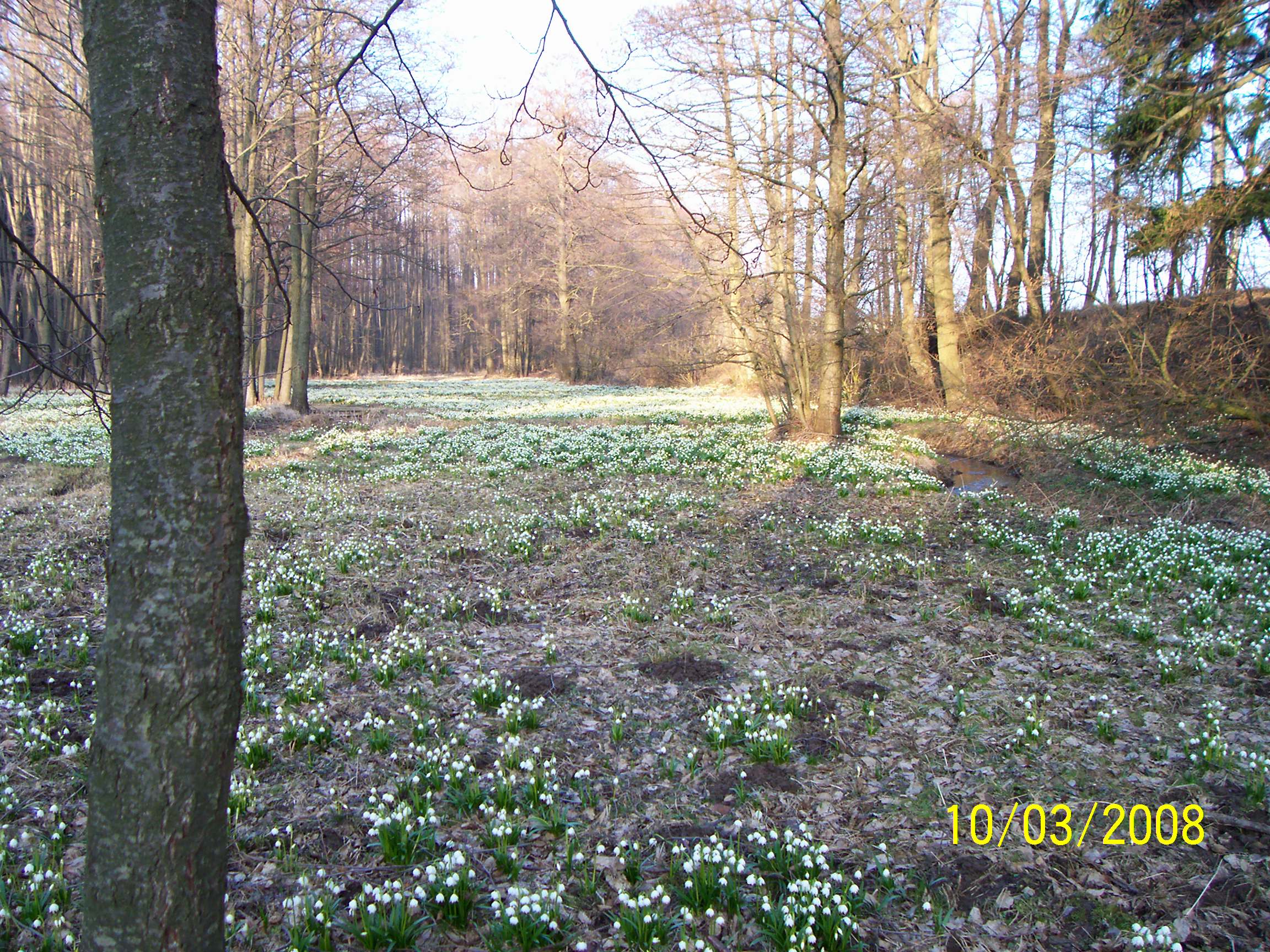 Fotografie + Description: Louka s hojným výskytem bledule jarní - chráněná lokalita