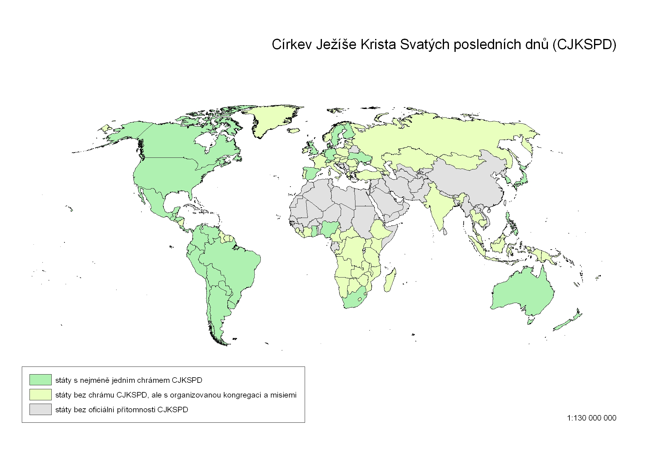 Mapa + Description: Církev Ježíše Krista Svatých posledních dnů - rozmístění ve světě 2007