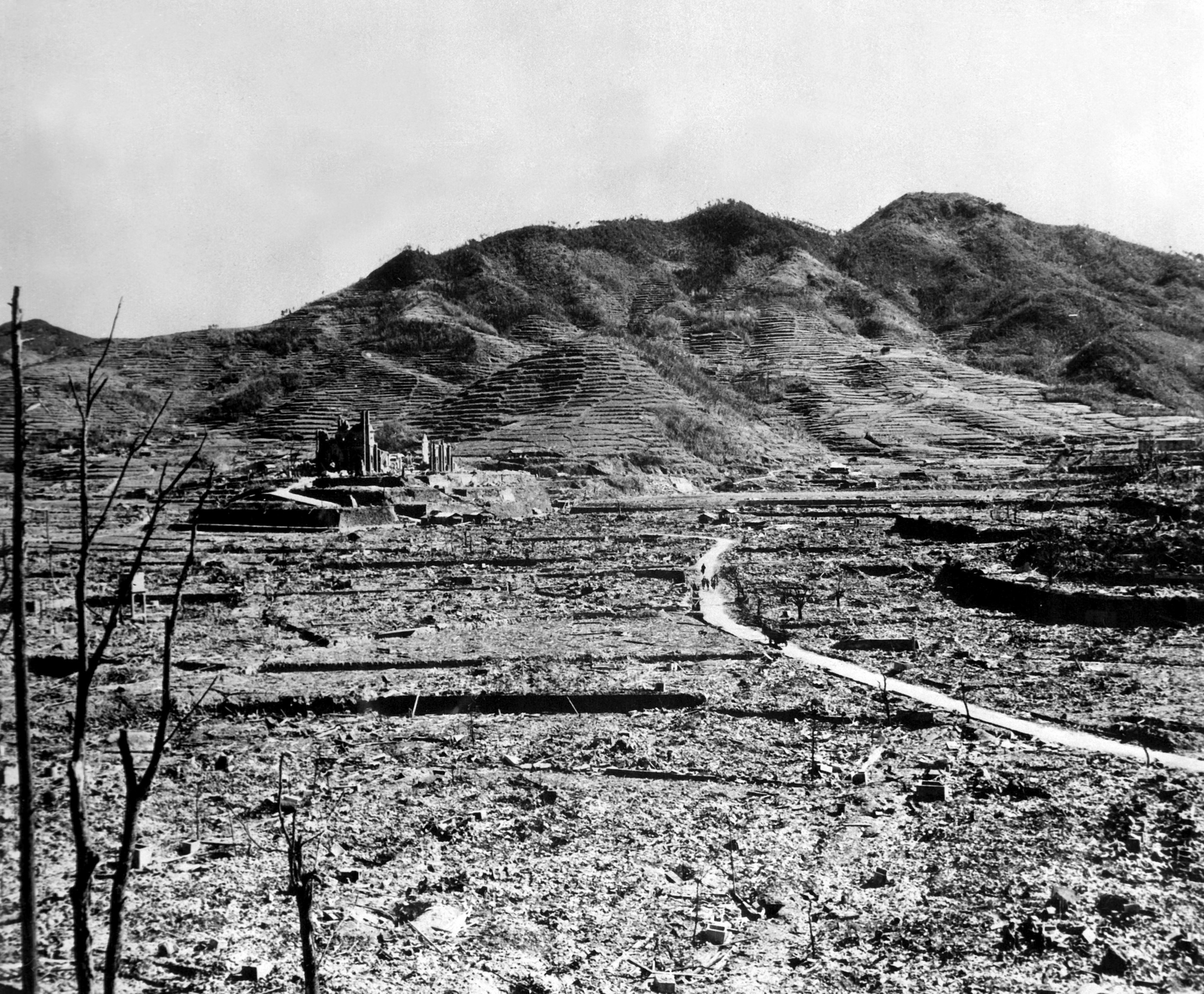 Fotografie + English: In the background, a Urakami Cathedral on a hill in Nagasaki.