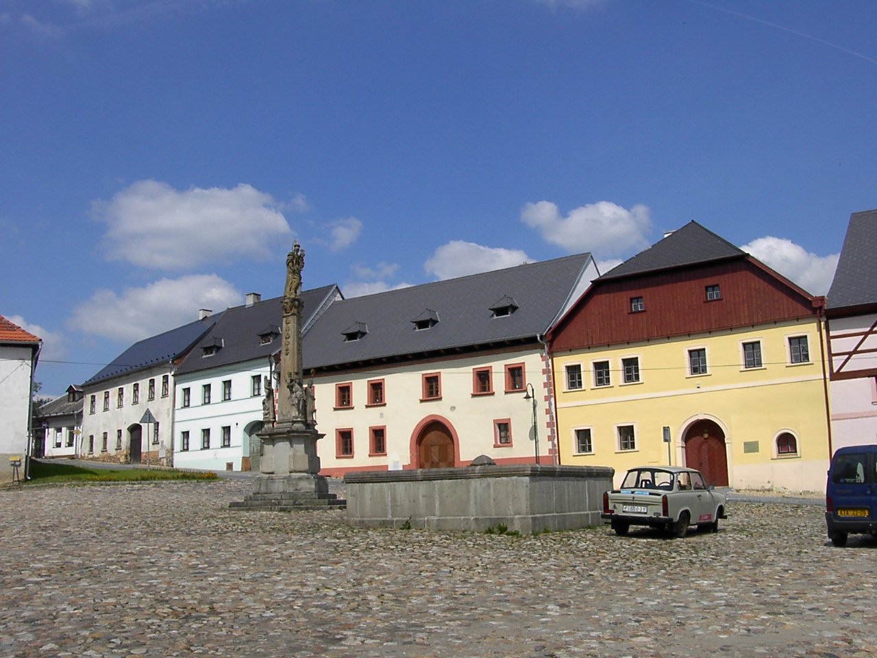 - Czech: Domy na úterské "návsi" s Mariánským sloupem.
