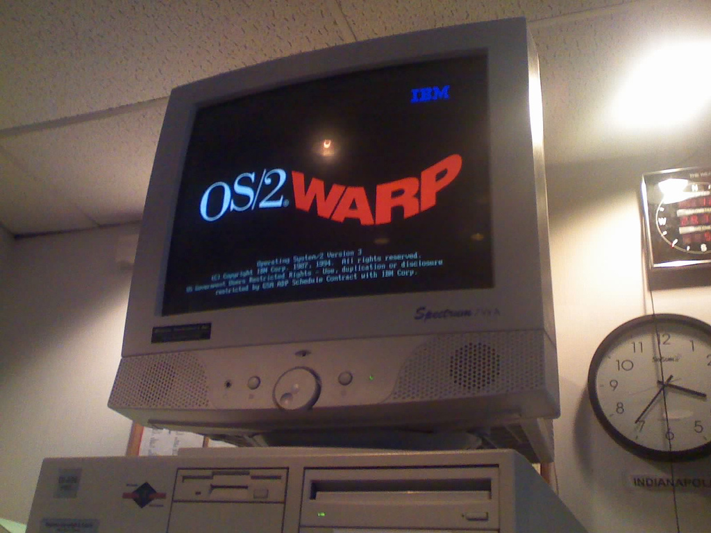 Fotografie + The dictaphone machine at the airport runs OS/2 Warp. How quaint. (This photo was taken on May 23, 2007 in Sterling Heights, Indianapolis, IN, US.) + pochází z Flickr.com , kde má status - Creative Commons Attribution-NonCommercial-NoDerivs 2.0 Generic (autor: Matthew Payne).
