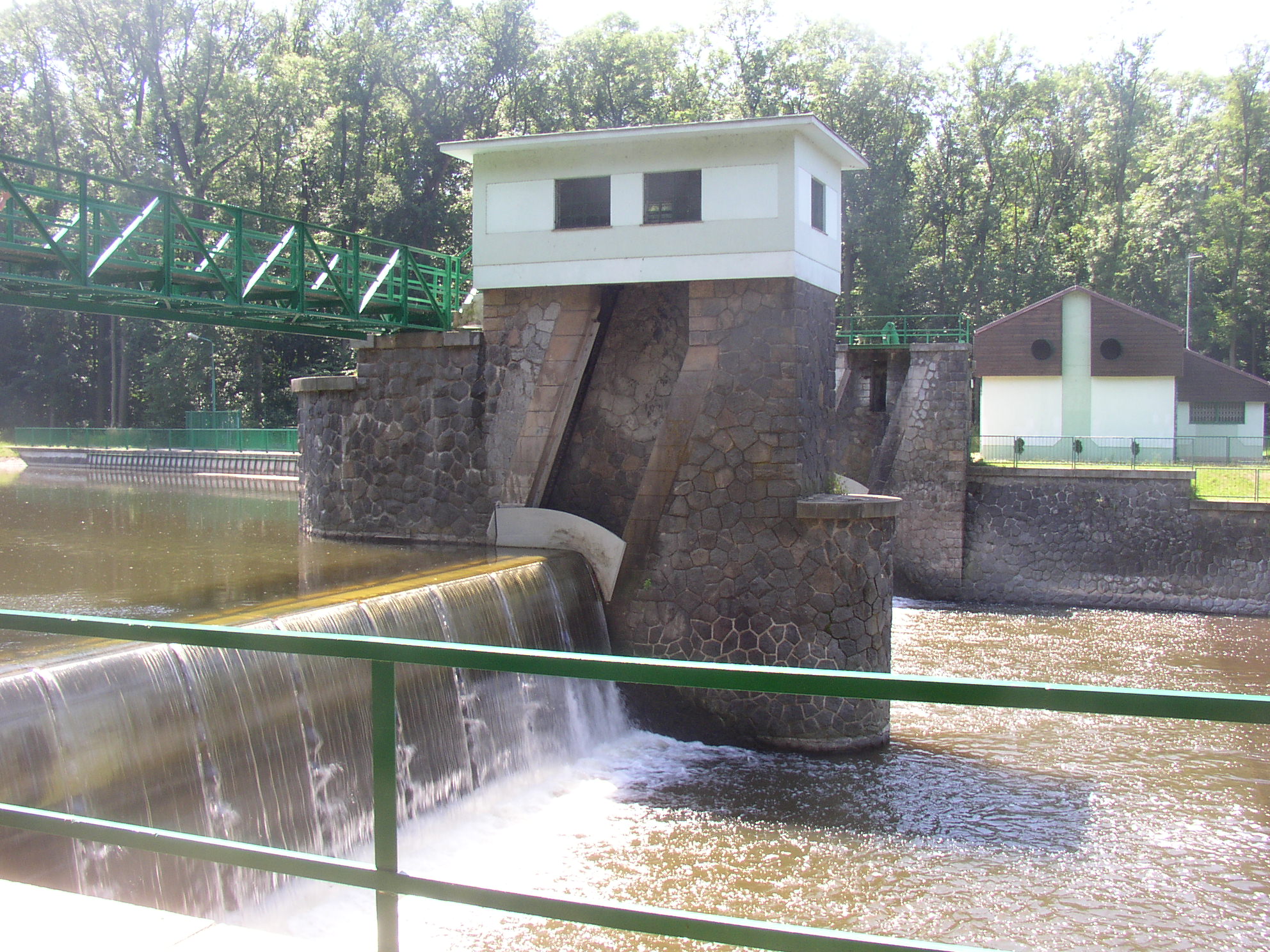 Soubor:Ohre River CZ Doksany Weir with small hydro 162.jpg