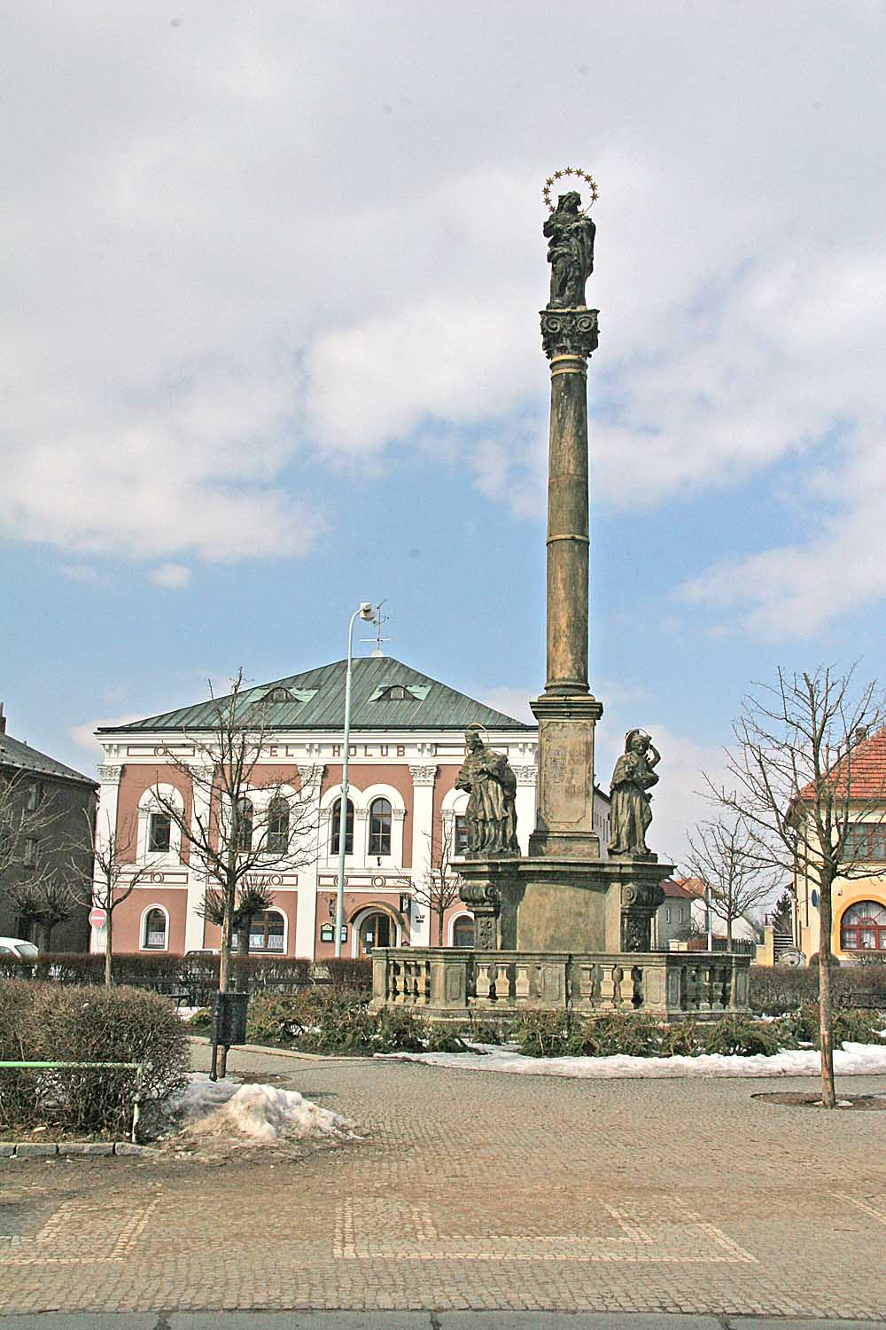 Fotografie + Česky: Opočno, Mariánský sloup na náměstí, district Hradec Králové, Czech Republic