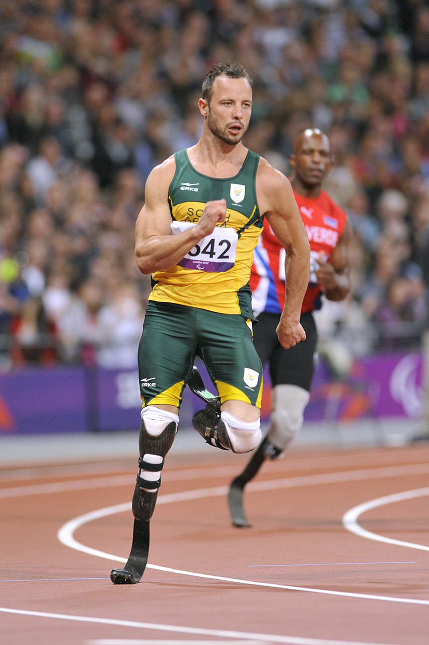 - Italiano: L'atleta paralimpico sudafricano Oscar Pistorius in gara ai Giochi paralimpici di Londra 2012.