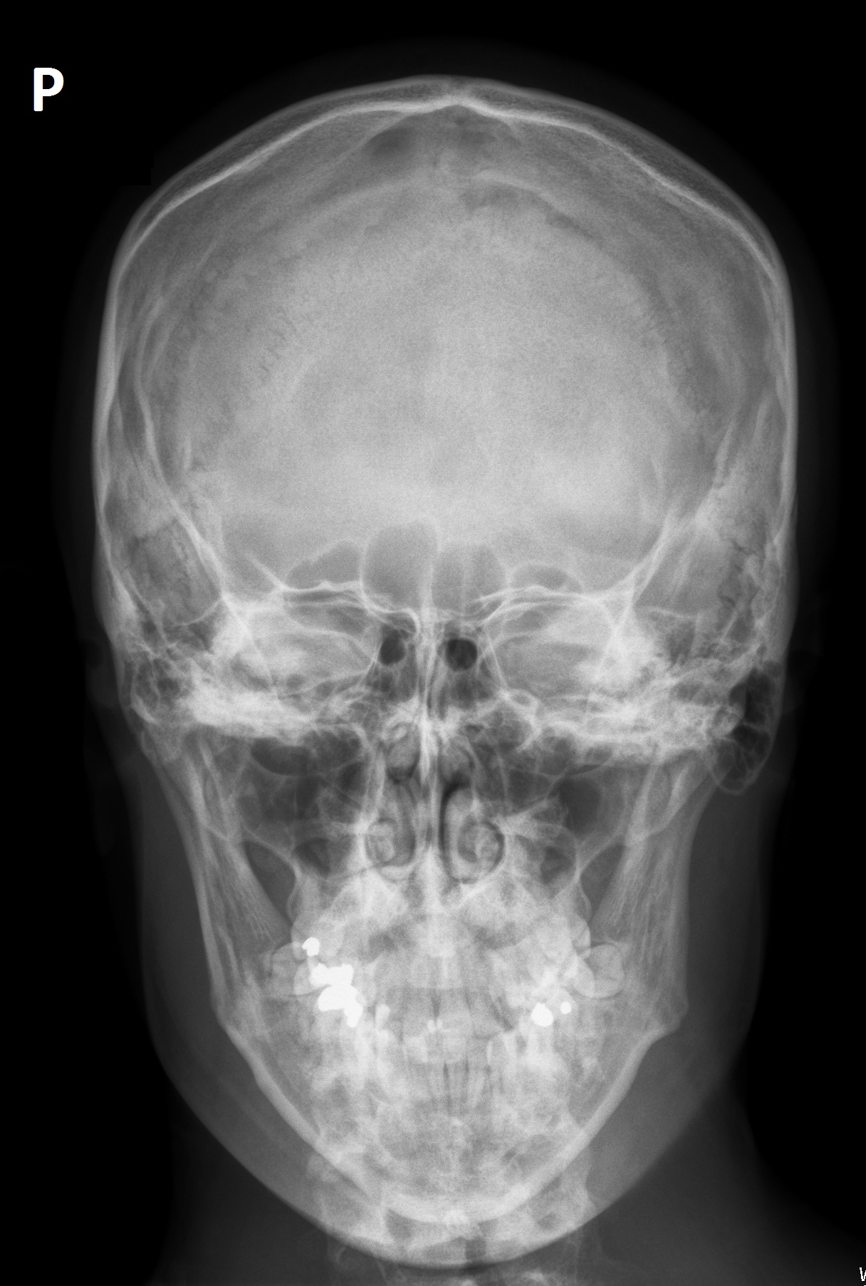 - Čeština: Zadopřední snímek lbi pořízen digitálním rentgenem.