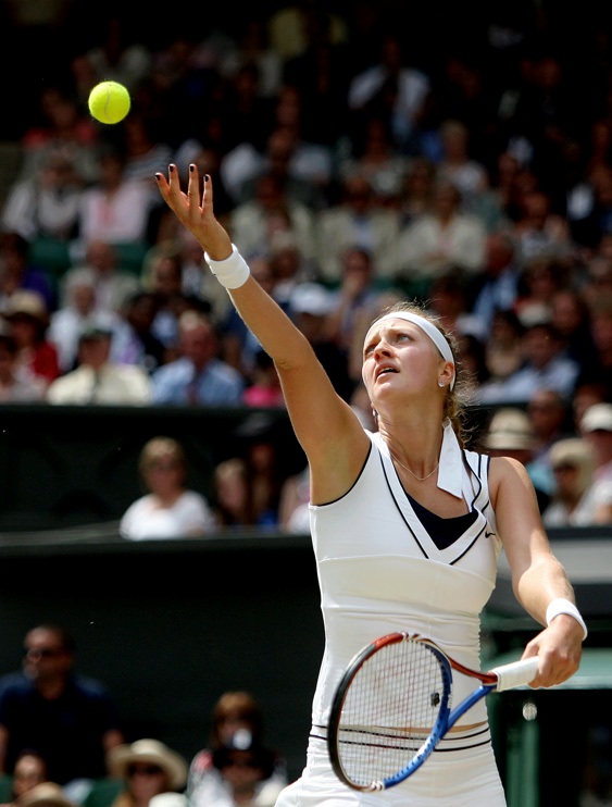Fotografie + Čeština: Česká tenistka Petra Kvitová ve finále ženské dvouhry ve Wimbledonu 2011, v němž zvítězila na Mariou Šarapovovou