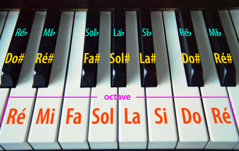 - Octave, nom des notes, touches blanches et noire d'un clavier de piano Octave, notes names, black and white keys of a piano keyboard