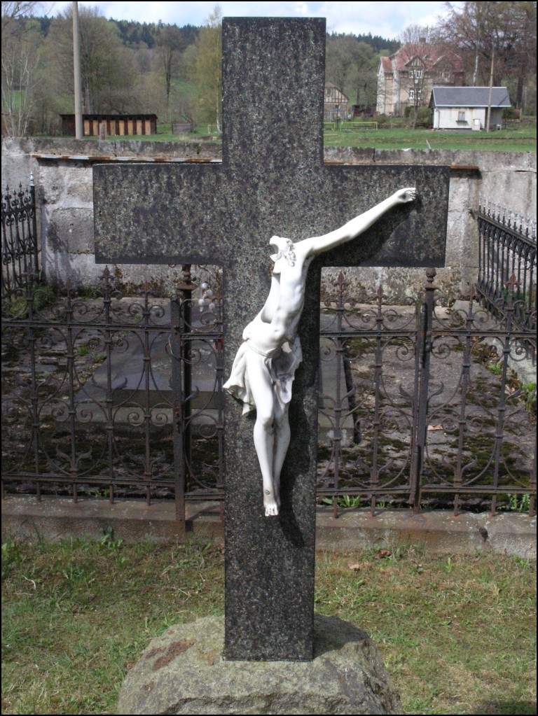 - Čeština: Poničený náhrobek na brtnickém hřbitově