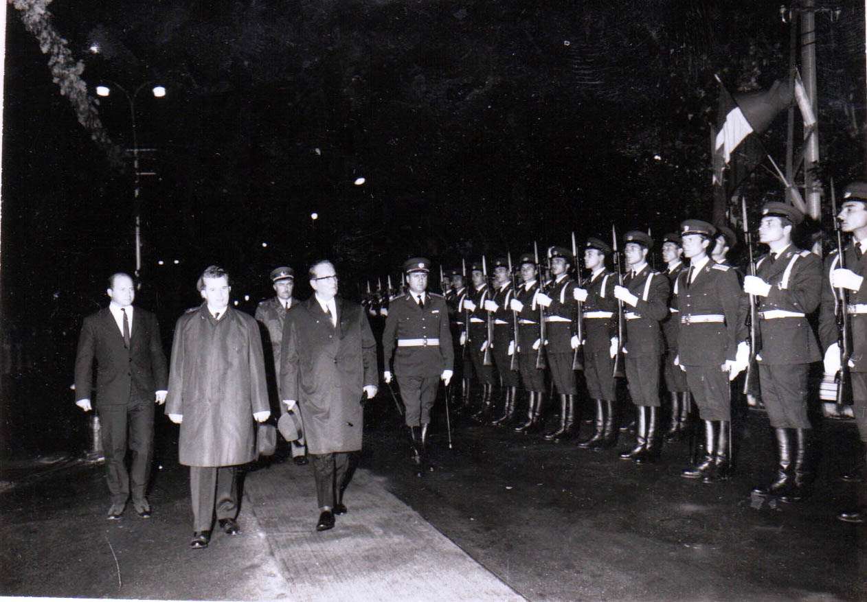 - Nicolae Ceauşescu, preşedintele Consiliului de Stat al R.S.R, împreună cu Iosip Broz Tito, preşedintele Republicii Socialiste Federative Iugoslavia, trece în revistă garda de onoare. Porţile de Fier. (20 septembrie 1969). [Fotografia #Z151]