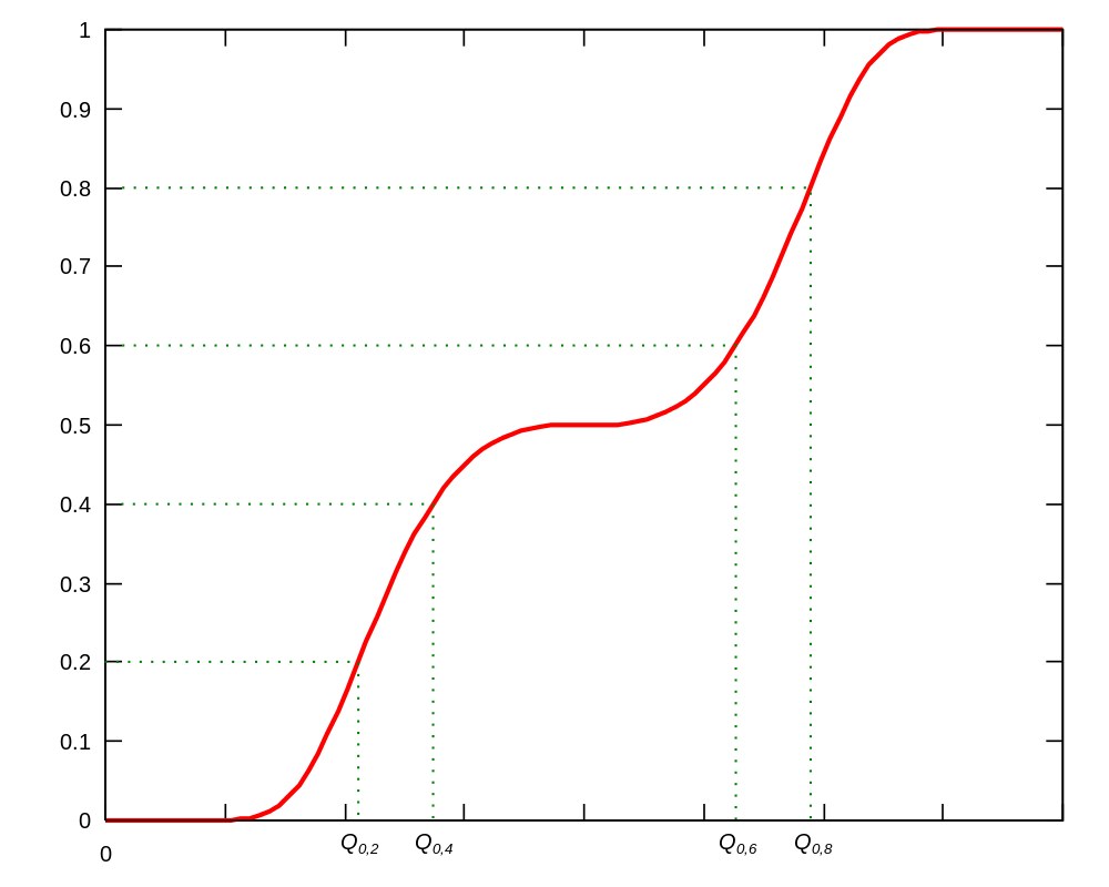 - Čeština: Ilustrace kvantilů. Červeně je vyznačena distribuční funkce, tečkované čáry vyznačují kvantily 20, 40, 60, 80 %.