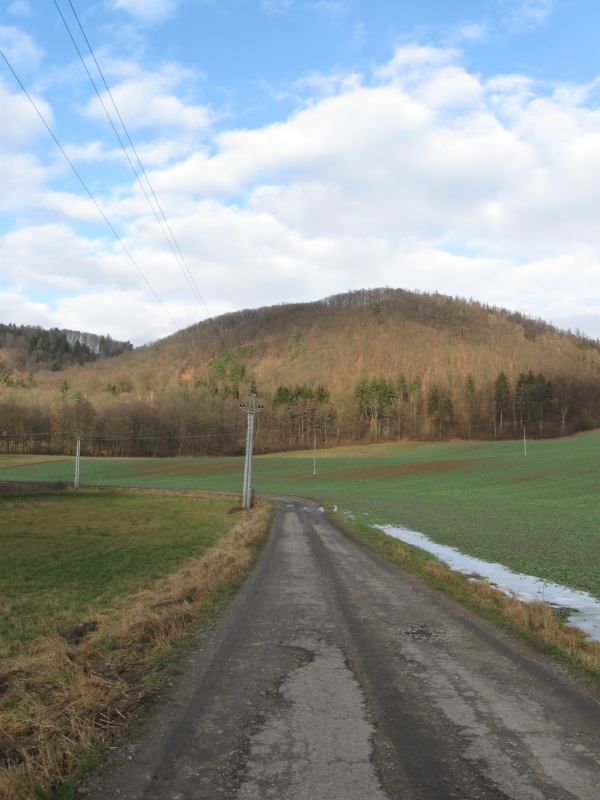 - Čeština: Rakovecké údolí - v pozadí kopec se keltským hradiskem Černov
