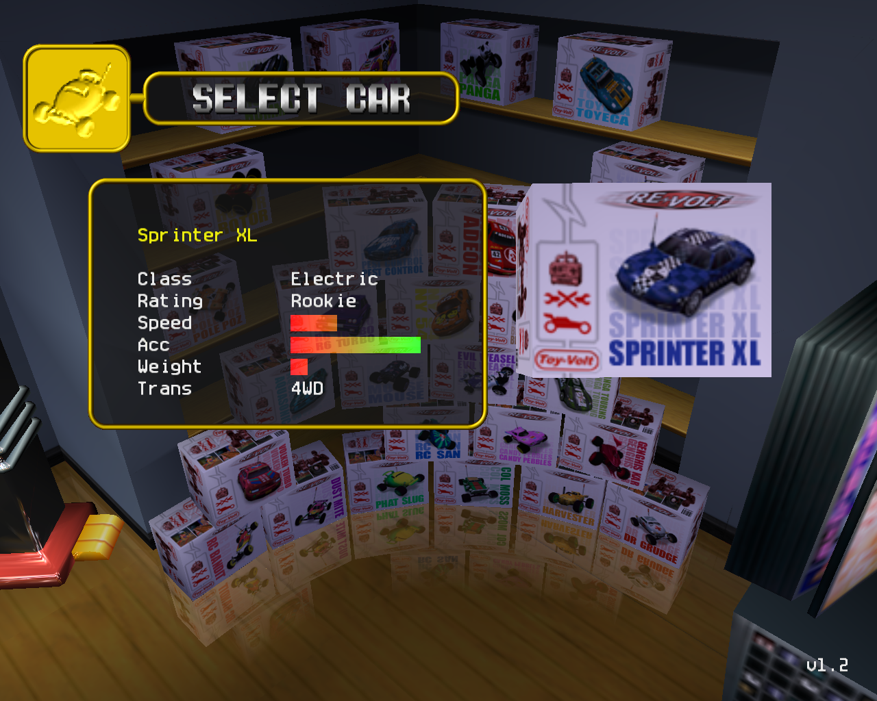 Aktuální snímek počítačové hry + Re-Volt verze 1 + pochází z mého vlastního počítače.