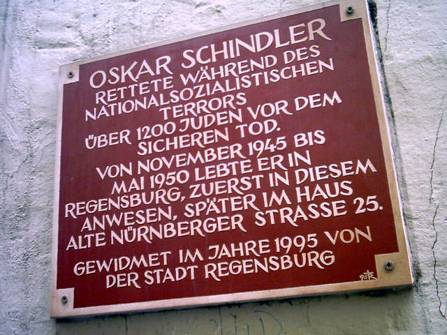 - Deutsch: Regensburg (Bayern): Gedenktafel für de:Oskar Schindler
