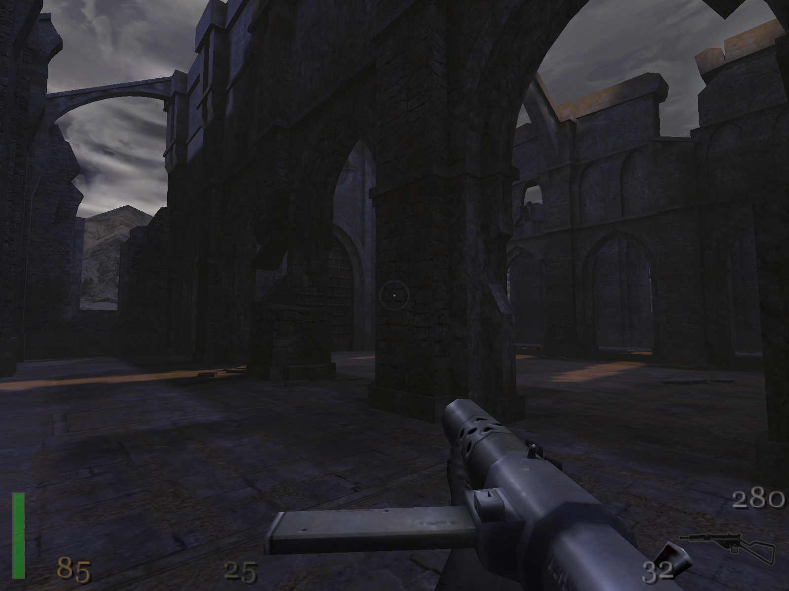 Aktuální snímek počítačové hry + Return to Castle Wolfenstein ( GOG.com ) + pochází z mého vlastního počítače.