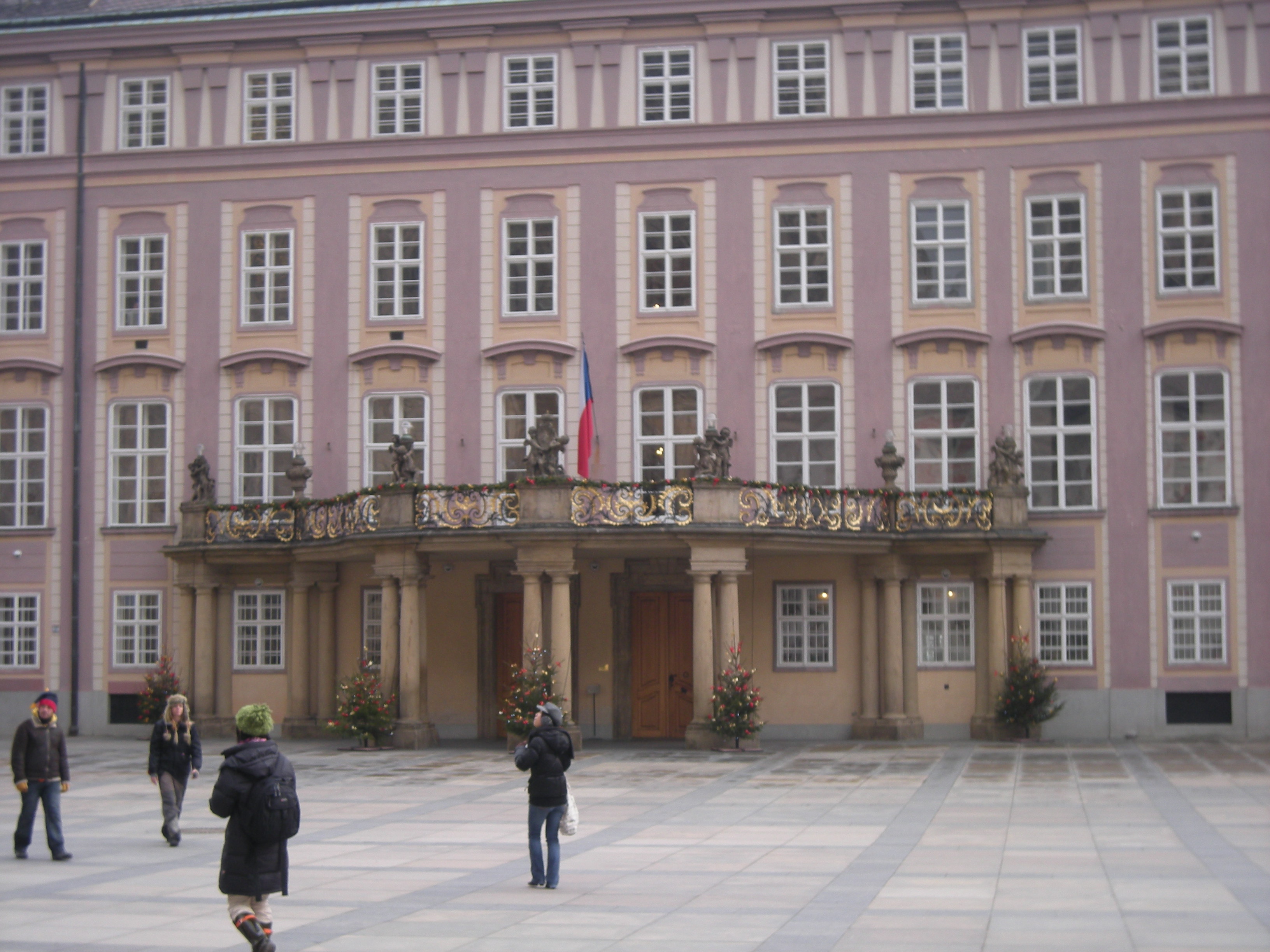 - Čeština: Prezidentský balkón na pražském hradě, ČR.