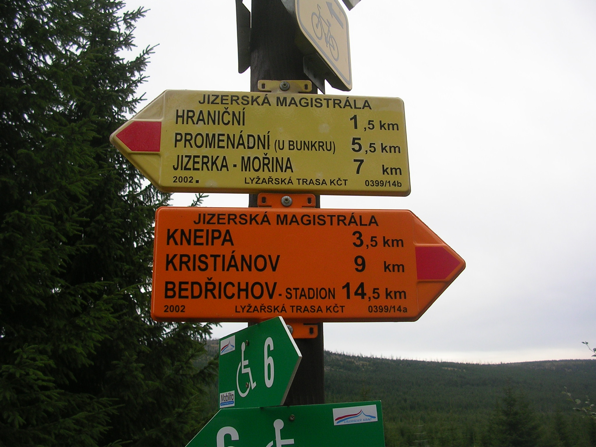 Soubor:Rozcestník Soušská silnice - Jizerská magistrála, lyžařské směrovky.jpg