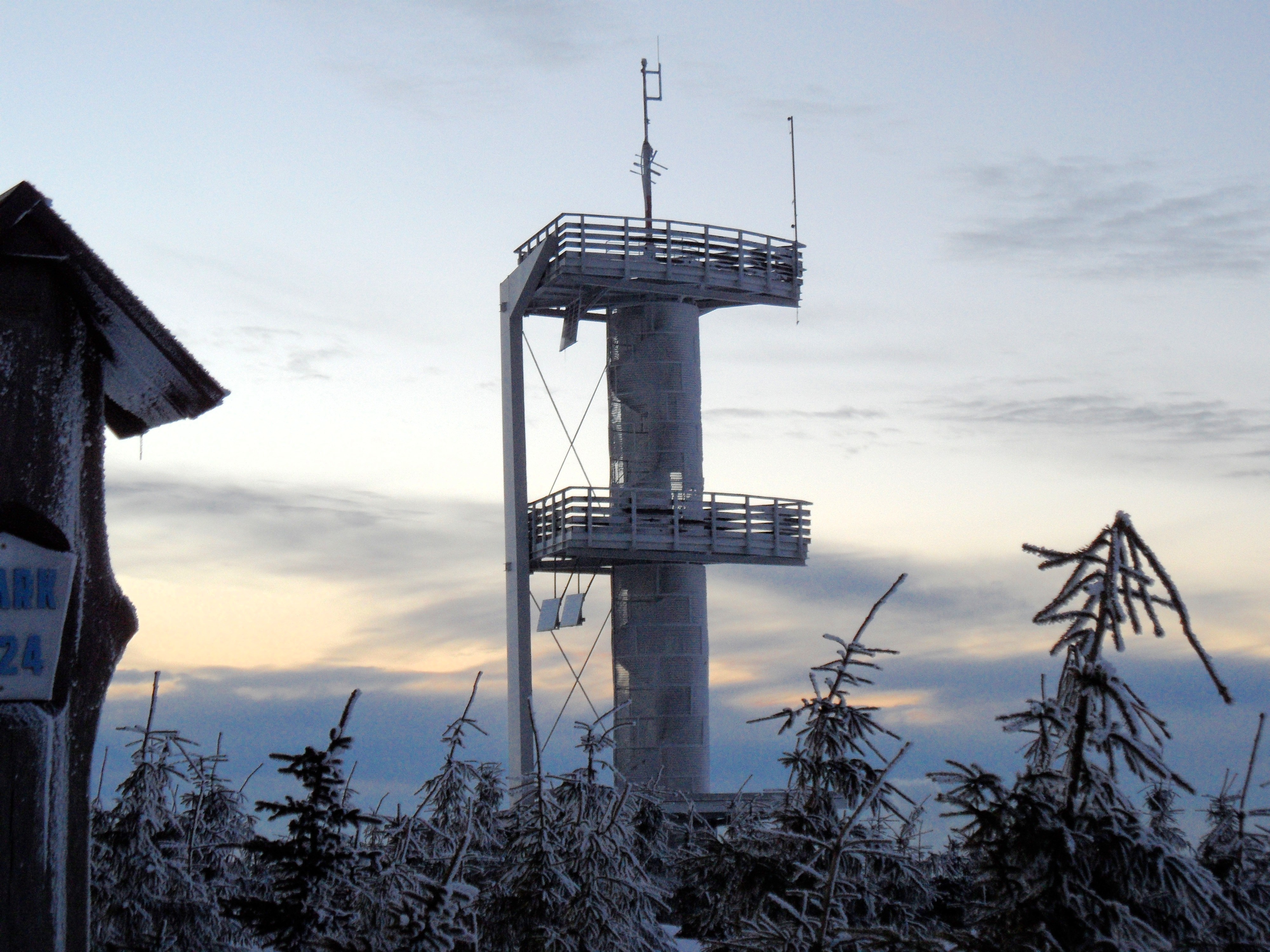 - Čeština: Rozhledna na hoře Smrk v Jizerských horách.